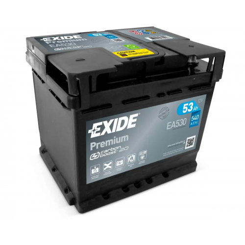 Exide EA530 premium car batteries are Exide's leading wet lead acid battery range. They are boosted by carbon additives that are added to the plates which result in the batteries recharging up to 1.5 times faster.